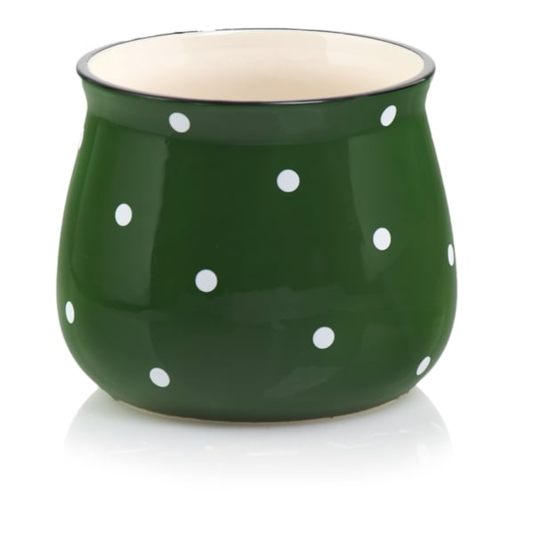 Okrugle, ručno izrađene keramičke posude sa šarmantnim retro točkicama stvorit će ugodnu, toplu atmosferu u svakom interijeru. Postavljene na prozorsku dasku, stol ili policu sigurno neće proći nezapaženo i biti će veseli akcent u svakom aranžmanu. Ovaj motiv na tegli je bezvremenski, što ga čini savršenim kako za klasično, tako i za moderno uređene prostore.