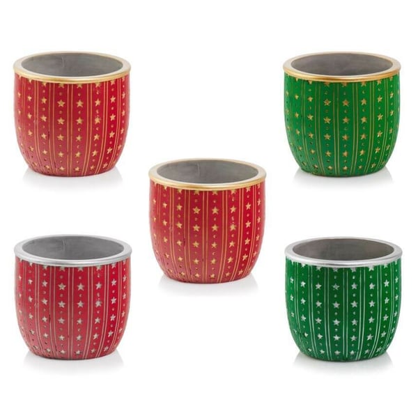 Okrugla posuda od ukrasnog betona savršen je način za stvaranje čarobne božićne dekoracije! Ona spaja eleganciju i izdržljivost. Proizvod je dostupan u dvije boje, crvenoj i zelenoj. Posude su ukrašene zlatnim i srebrnim zvijezdama. Ovi šarmantni detalji dodaju sjaj i eleganciju, stvarajući nezaboravan blagdanski ugođaj. Više informacija možete pronaći u kartici Specifikacija. Proizvodi su ručne izrade i stvarne dimenzije mogu malo odstupati od deklariranih (+/- 5%).