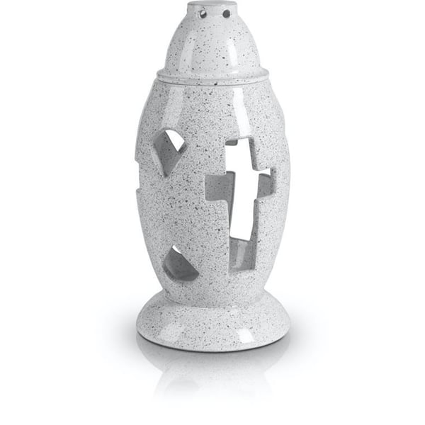 Keramički nadgrobni lampion. Proizvod je vodootporan i otporan na mraz. Više informacija možete pronaći u kartici tehnički podaci. Proizvodi su ručni rad i stvarne dimenzije mogu malo odstupati od deklariranih (+/- 5%).
