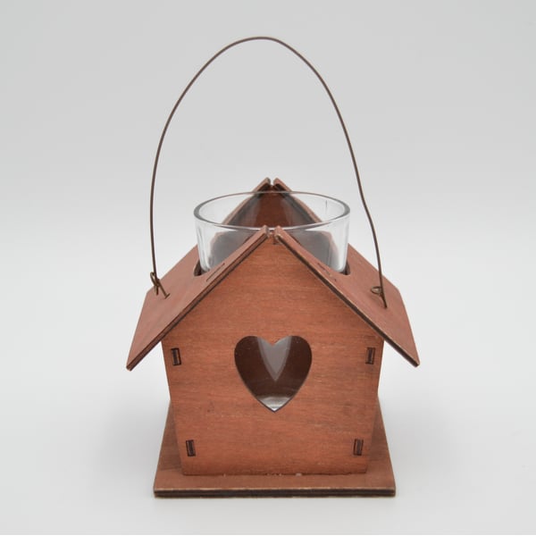 Drvena kučica sa staklenom čašom. Za lučice.