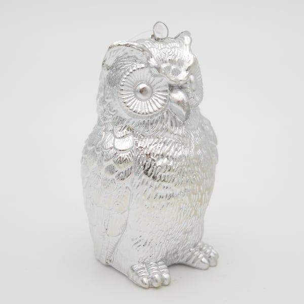 Plastična srebrna figurica u obliku sove.