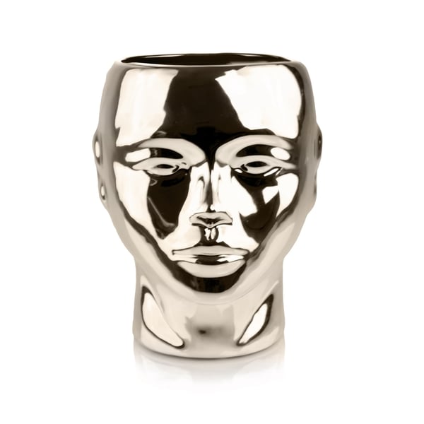 Posuda u obliku glave. Detalji govore o karakteru interijera - upravo zahvaljujući njima ljubitelji uređenja mogu staviti poslovičnu točku na i kada je riječ o uređenju kućnog prostora. Po našem mišljenju izvrsna ideja za nadopunu aranžmana su glazirane keramičke posude. Za kupce koji traže odvažnije dodatke, preporučujemo navlaku u obliku glave. Dekoracija će izgledati sjajno u društvu sukulenata ili drugih biljaka i zasigurno neće promaknuti pažnji gostiju koji posjete dom. Ručno izrađena posuda može biti zanimljiv dodatak dnevnoj ili spavaćoj sobi uređenoj u boho, etno ili minimalističkom stilu. Artikl je izrađen od keramike tankih stijenki i dovršen visokokvalitetnom zrcalno zlatnom glazurom. Zahvaljujući procesu galvanizacije, površina proizvoda je glatka i reflektira okolinu poput ogledala. Elektrolitičko zlato koje daje metalni karakter prisutno je na cijeloj površini predmeta, uključujući i unutrašnjost. Proizvodi su ručno rađeni i stvarne dimenzije mogu malo odstupati od deklariranih (+/- 5%).