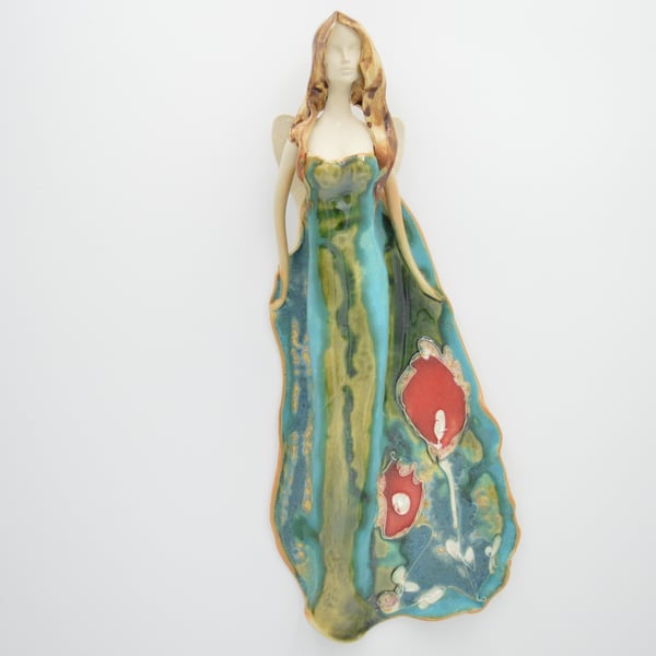 Unikatna figura u obliku anđela. Proizvod je ručni rad te stvarne dimenzije mogu neznatno odstupati od deklariranih (+/- 5%). Izrađen od visokokvalitetne keramike i dostupni su u raznim bojama. Za zid.